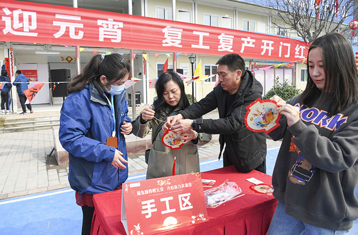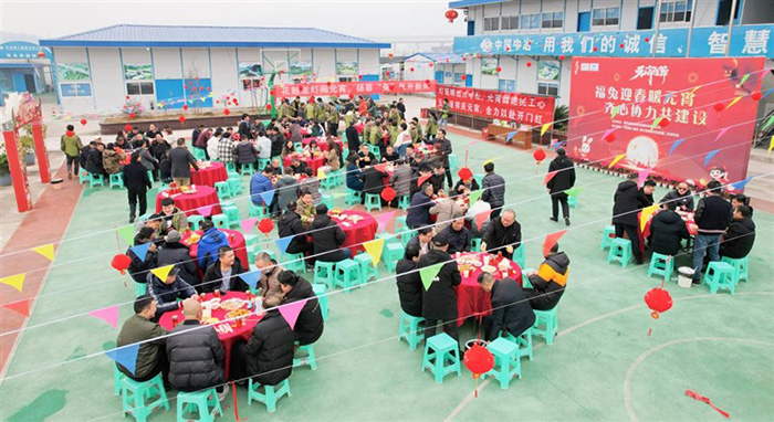 元宵主題活動內(nèi)容豐富,現(xiàn)場氛圍歡騰喜慶。各參建單位的建設(shè)者們在裝扮一新的項目部運動場上一起掛燈籠、猜燈謎、寫春聯(lián)、包餃子、包湯圓、套圈、投壺、猜燈謎、摸福……熱情高漲、歡笑聲此起彼伏!