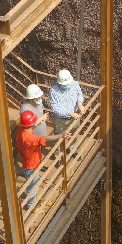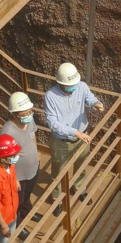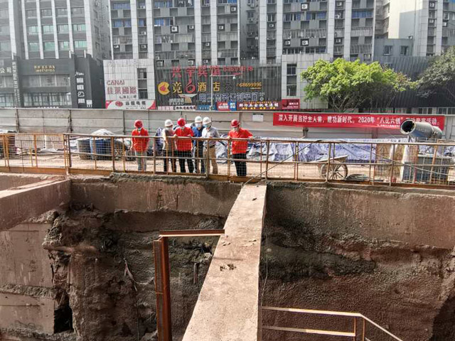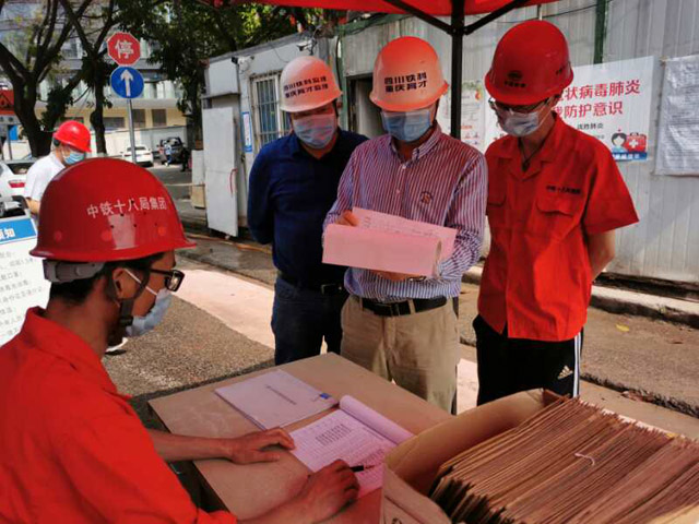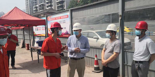 圖片內(nèi)容為軌道環(huán)線二期項(xiàng)目,總監(jiān)代表曾朝東及專業(yè)監(jiān)理工程師在工地現(xiàn)場(chǎng)
